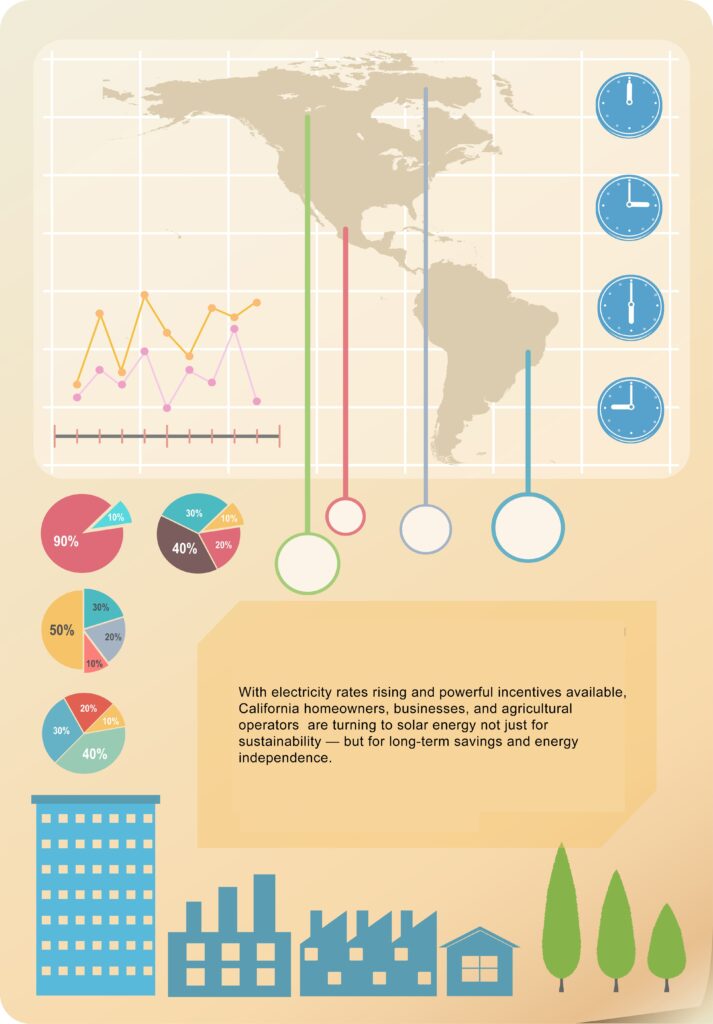 With electricity rates rising and powerful incentives available, California homeowners, businesses, and agricultural operators are turning to solar energy not just for sustainability — but for long-term savings and energy independence.